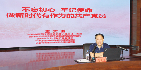 本次黨課分三部分進(jìn)行,首先,在黨委書記宋剛的帶領(lǐng)下,全體黨員齊唱《沒有共產(chǎn)黨就沒有新中國》;之后,黨委副書記金慈云帶領(lǐng)全體黨員重溫了入黨誓詞;最后,長春市委黨校黨建黨史教研部主任王文波教授為全體黨員上黨課,王文波教授以“不忘初心,牢記使命,做新時代有作為的共產(chǎn)黨員”為主題,生動形象、深入淺出地闡釋了中國共產(chǎn)黨人的“初心”和“使命”,為黨員干部深刻領(lǐng)會習(xí)近平新時代中國特色社會主義思想提供了指引和幫助。